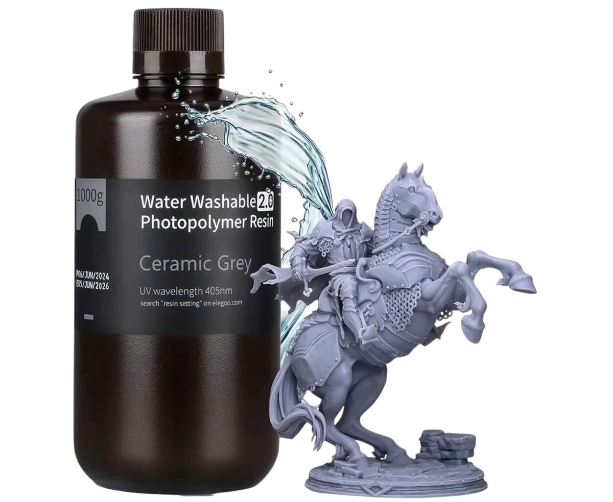 Опис Фотополімерна смола ELEGOO Resin, Water Washable, 2.0 1кг, grey (50.103.0198)