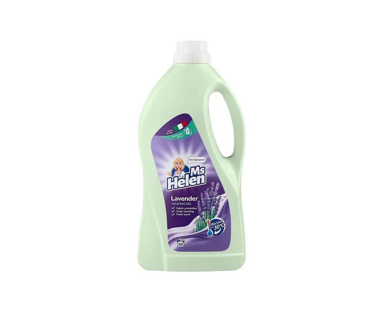 Засіб розрахований на 50 циклів прання, що робить його економічним вибором для великої родини. Досягніть бажаного результату без зайвих зусиль: насолоджуйтесь чистотою без компромісів щодо якості та тривалості використання. За допомогою Ms Helen, ваші улюблені речі завжди виглядатимуть прекрасно, а приємний аромат лаванди додасть їм ще більше привабливості.
