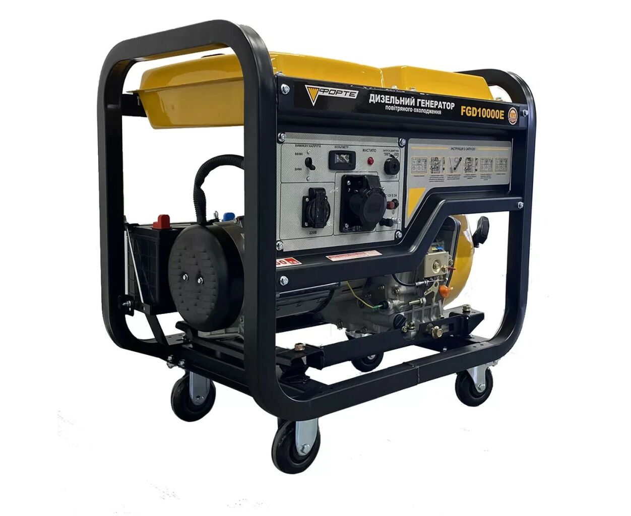 Форте FGD10000E — дизельний генераторам, призначений для основних або резервних джерел електроенергії, живлення споживачів в сільському господарстві, в медичних та освітніх установах, побутових умовах, місцях, де немає ліній електропередач або відключено електрику. Дизельний генератор зручно використовувати як сезонне джерело електроенергії.