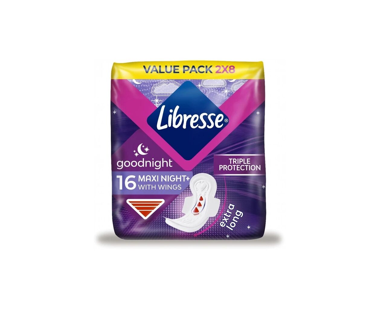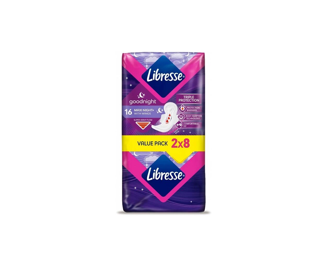 З нічними прокладками Libresse Maxi Night насолоджуйся спокійним сном у будь-якому положенні. Завдяки системі потрійного захисту залишайся в безпеці та відчувай сухість навіть під час найрясніших виділень вночі.