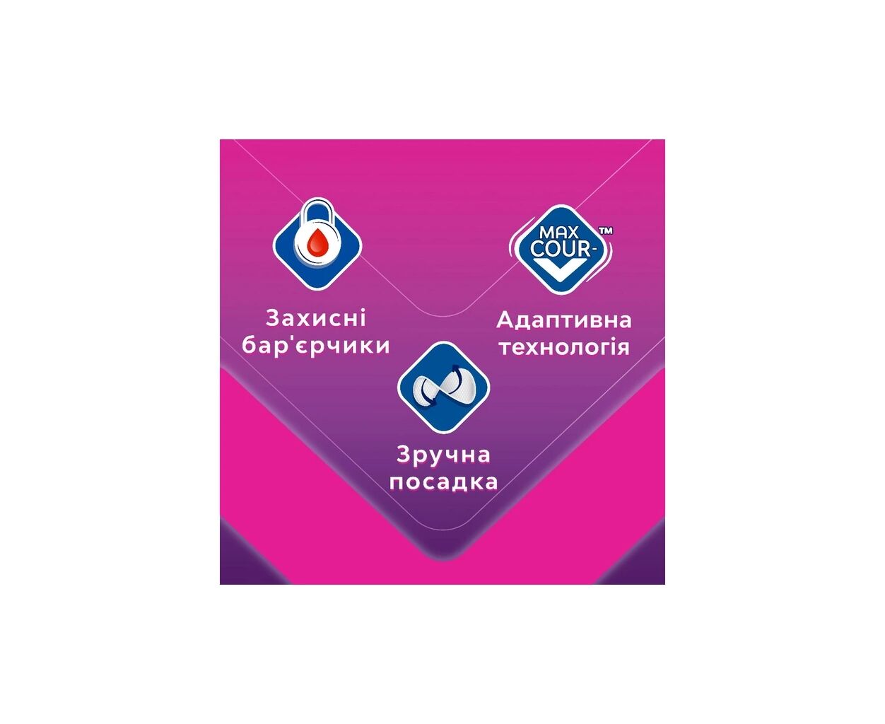 - Прокладка з технологією Cour-V, що адаптується до твого тіла та забезпечує ідеальну посадку та рух