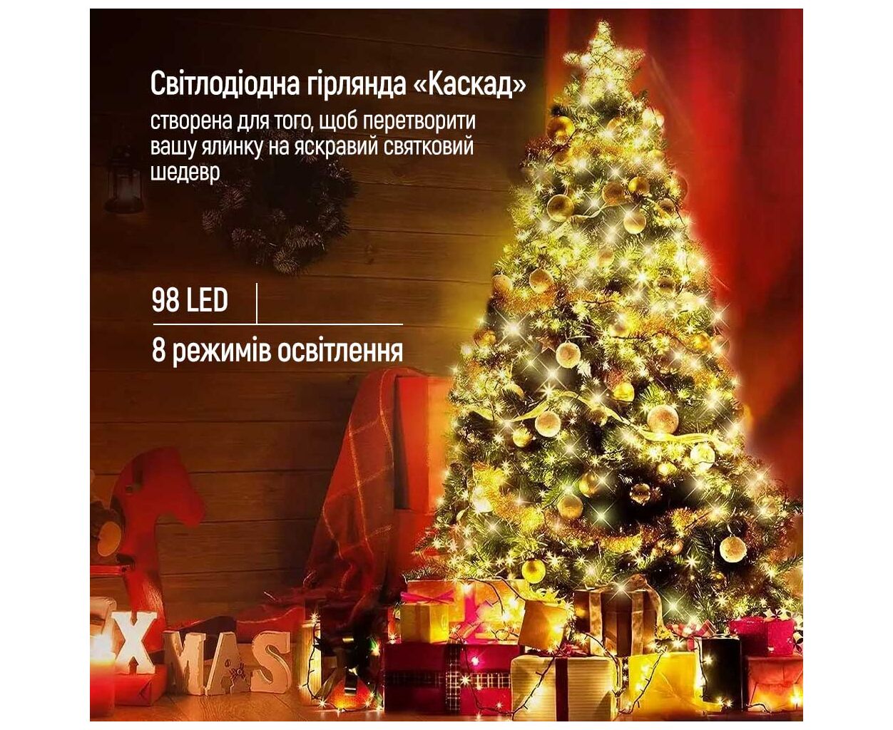 Опис Гірлянда ColorWay Каскад LED 98 7 x 1.5 м 8 функцій (CW-G-98L71CU)