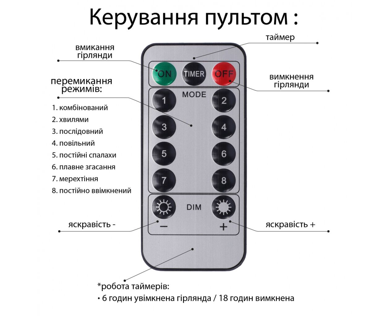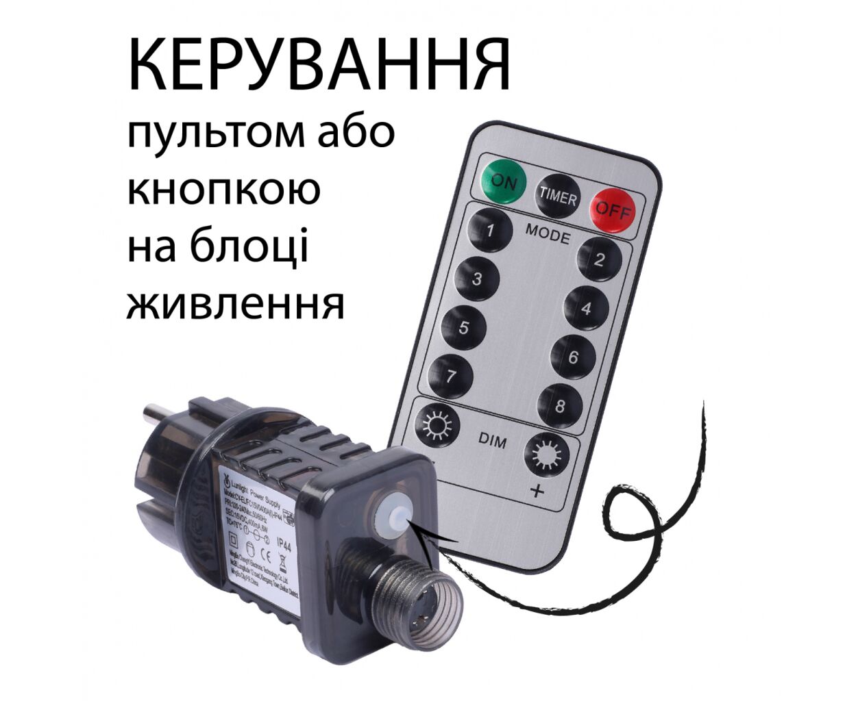 Нитка 100 м, 1000 LED тепло-біла, 8 функцій, пульт