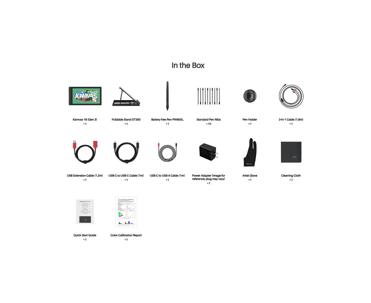 Kamvas 16 (Gen 3) має роздільну здатність 2,5K QHD (2560x1440), що є значним покращенням у порівнянні з попередником. Завдяки 15,8-дюймовому екрану Kamvas 16 (Gen 3) досягає щільності пікселів 186 PPI, забезпечуючи художникам чітке і кристально чисте зображення.