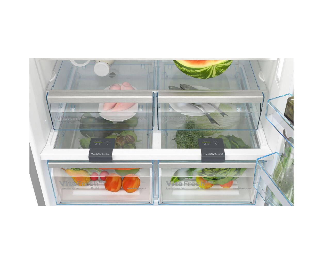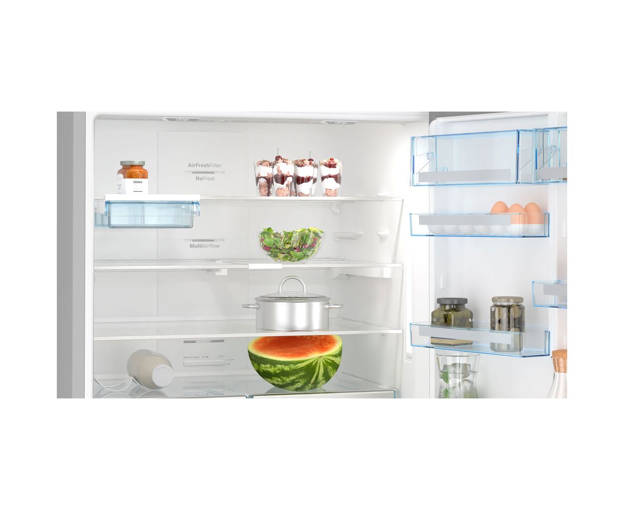 окремостоячий (соло), двокамерні, Загальний об'єм холодильника - 631 л, Система розморожування No Frost - холодильне + морозильне відділення, A++, інверторний, Оснащення - контейнер для овочів, льодогенератор, лоток для яєць, Корисний об'єм холодильної камери - 479 л, Полиці холодильної камери - загартоване скло (3 шт.), Корисний об'єм морозильної камери - 152 л, Кількість секцій в морозильній камері - 2 шт, 39 дБ, 186 см, 86 см, 81 см, 113 кг, Колір - нержавіюча сталь