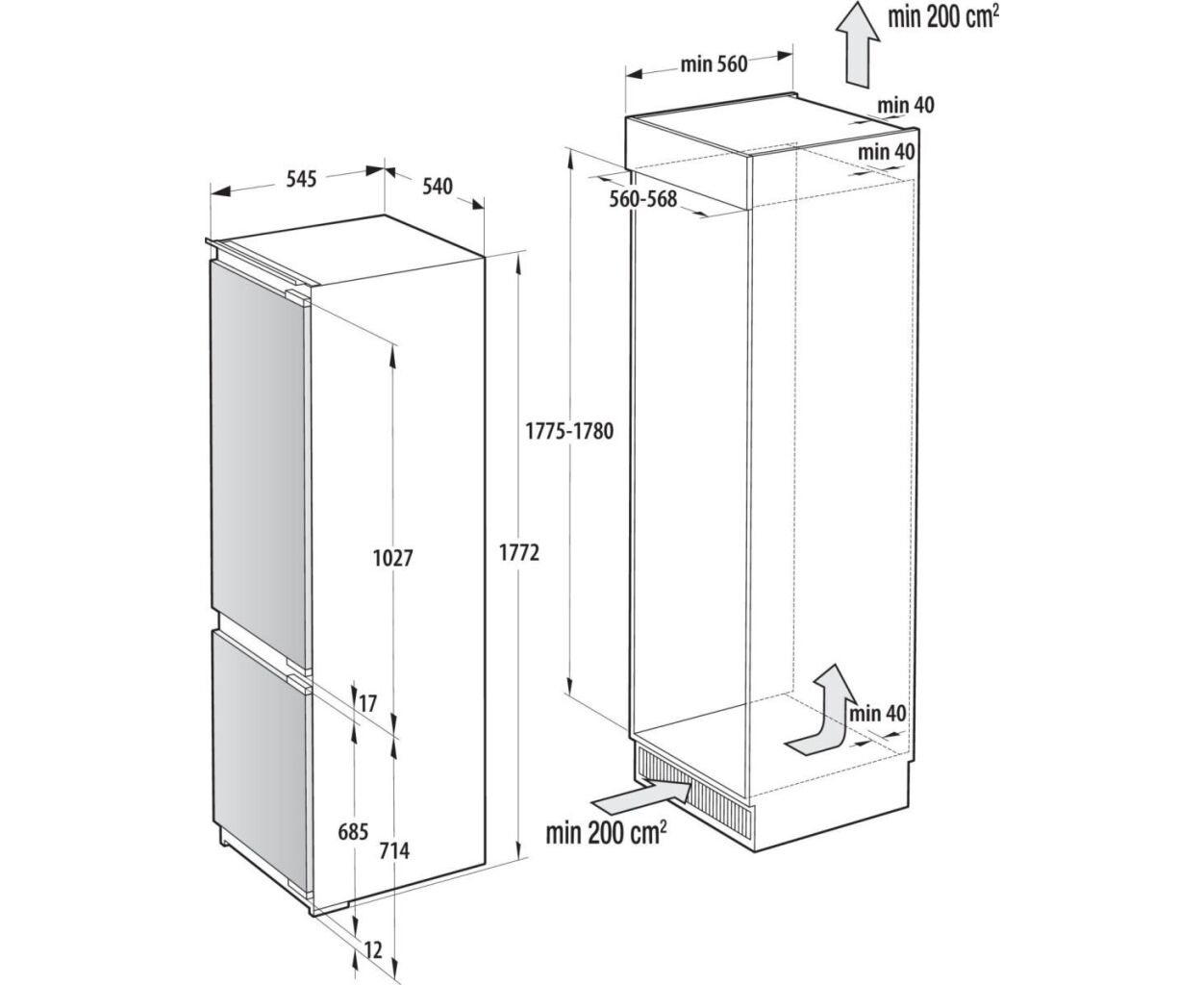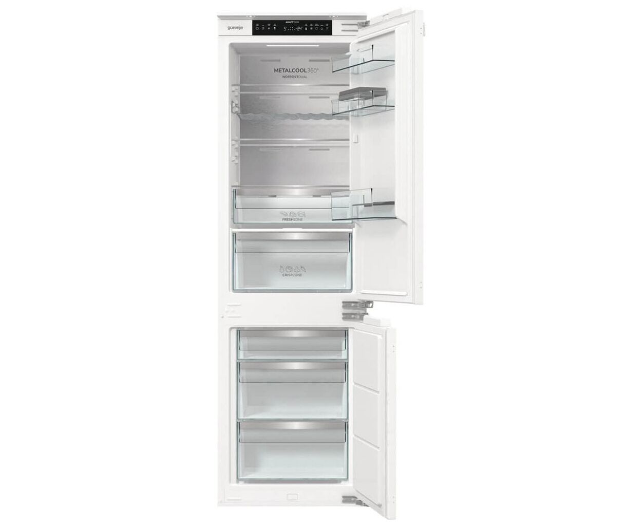 вбудовуваний, двокамерні, Загальний об'єм холодильника - 244 л, Система розморожування No Frost - холодильне + морозильне відділення, E, інверторний, Оснащення - форма для льоду, полиця для пляшок, контейнер для овочів, лоток для яєць, Корисний об'єм холодильної камери - 176 л, Полиці холодильної камери - загартоване скло (4 шт.), Корисний об'єм морозильної камери - 76 л, Кількість секцій в морозильній камері - 3 шт, 35 дБ, 177.2 см, 54 см, 54.5 см, 56 кг, Колір - білий