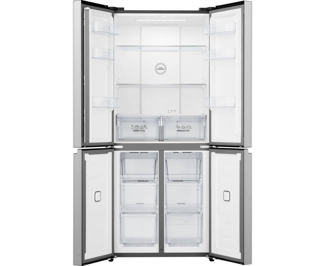 окремостоячий (соло), багатодверні, Загальний об'єм холодильника - 460 л, Система розморожування No Frost - холодильне + морозильне відділення, E, інверторний, Оснащення - форма для льоду, контейнер для овочів, лоток для яєць, Корисний об'єм холодильної камери - 311 л, Полиці холодильної камери - загартоване скло (3 шт.), Корисний об'єм морозильної камери - 149 л, Кількість секцій в морозильній камері - 6 шт, 37 дБ, 190 см, 79.4 см, 65 см, 83 кг, Колір - нержавіюча сталь