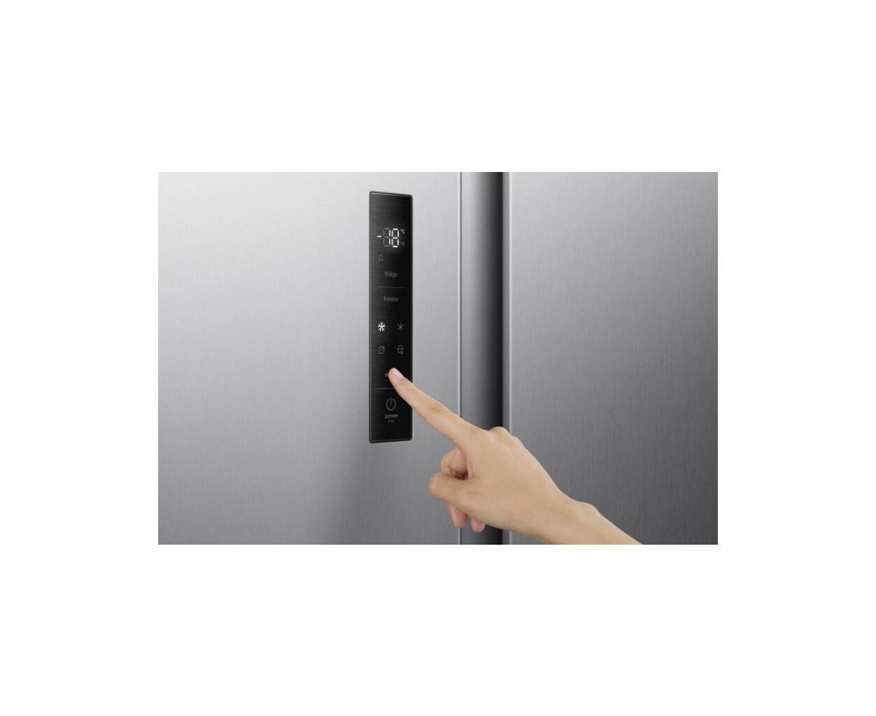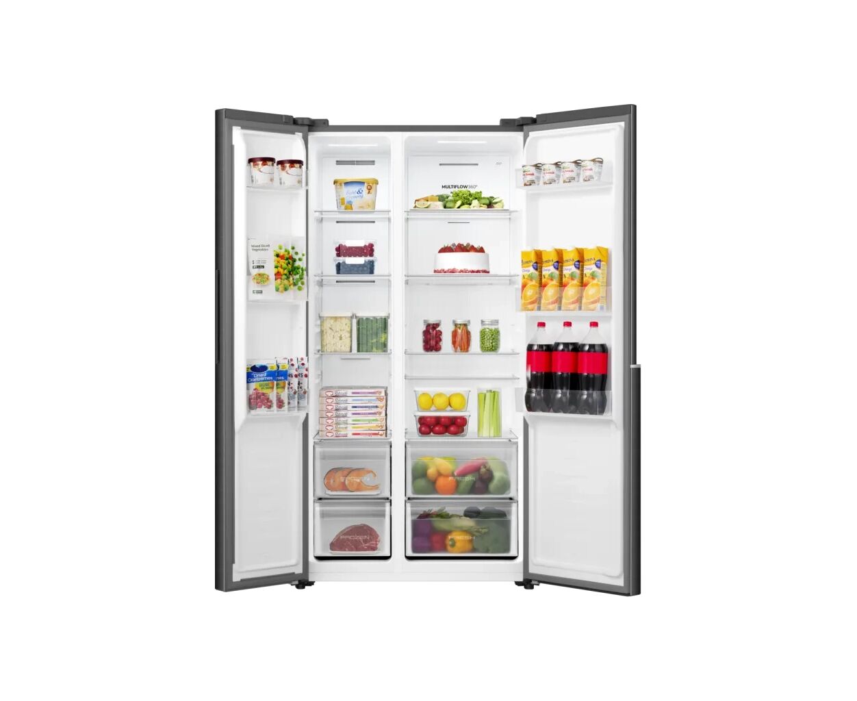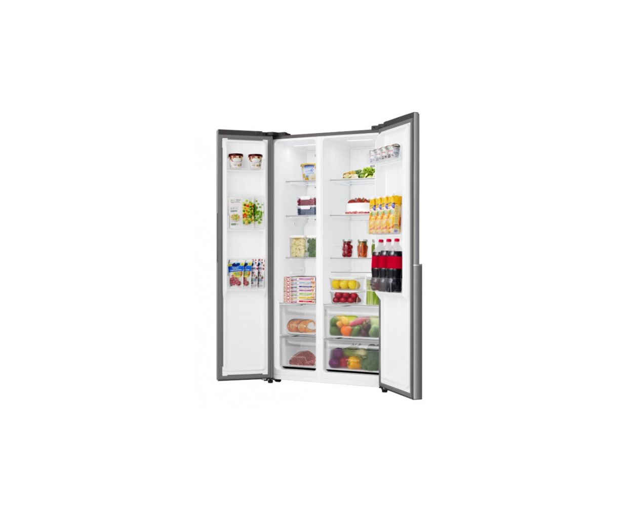 окремостоячий (соло), side-by-side, Загальний об'єм холодильника - 544 л, Система розморожування No Frost - холодильне + морозильне відділення, E, інверторний, Оснащення - контейнер для овочів, лоток для яєць, Корисний об'єм холодильної камери - 347 л, Полиці холодильної камери - загартоване скло (5 шт.), Корисний об'єм морозильної камери - 197 л, Кількість секцій в морозильній камері - 5 шт, 39 дБ, 178.6 см, 91.1 см, 61.5 см, 80 кг, Колір - нержавіюча сталь