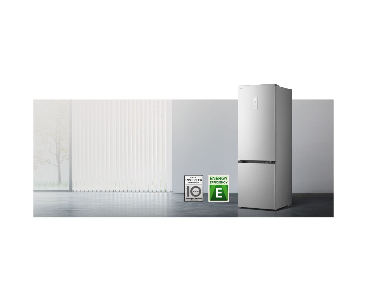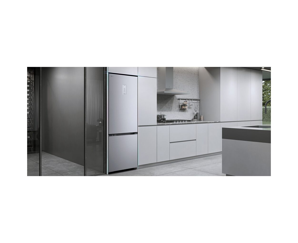 окремостоячий (соло), двокамерні, Загальний об'єм холодильника - 375 л, Система розморожування No Frost - холодильне + морозильне відділення, E, інверторний, Оснащення - форма для льоду, полиця для пляшок, контейнер для овочів, лоток для яєць, Корисний об'єм холодильної камери - 262 л, Полиці холодильної камери - загартоване скло (5 шт.), Корисний об'єм морозильної камери - 113 л, Кількість секцій в морозильній камері - 3 шт, 35 дБ, 203 см, 59.7 см, 67.4 см, 74 кг, Колір - сріблястий