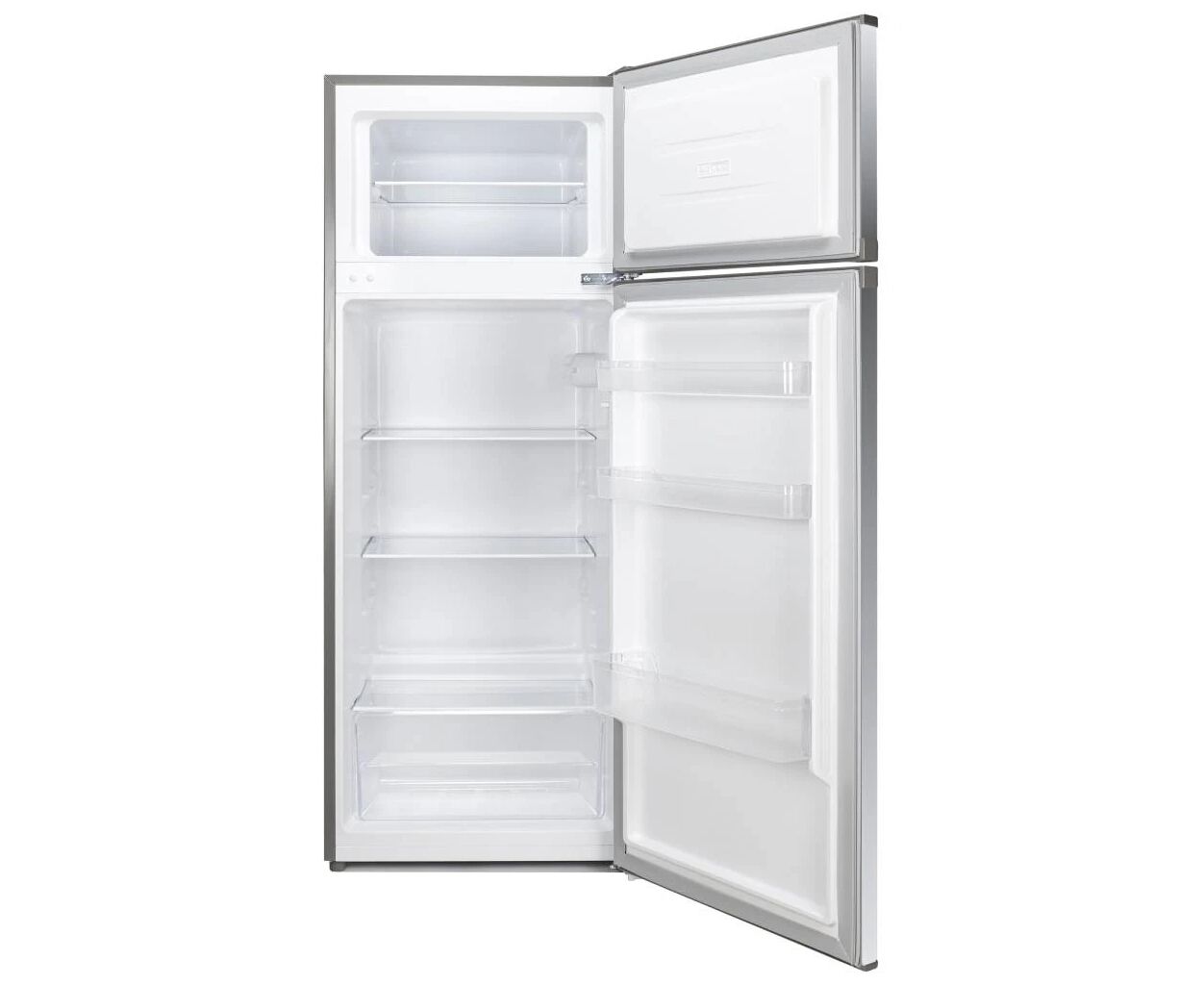 окремостоячий (соло), двокамерні, Загальний об'єм холодильника - 205 л, A+, звичайний, Оснащення - контейнер для овочів, Корисний об'єм холодильної камери - 168 л, Полиці холодильної камери - загартоване скло (3 шт.), Корисний об'єм морозильної камери - 37 л, Кількість секцій в морозильній камері - 2 шт, 42 дБ, 143 см, 55 см, 55 см, 38 кг, Колір - сріблястий
