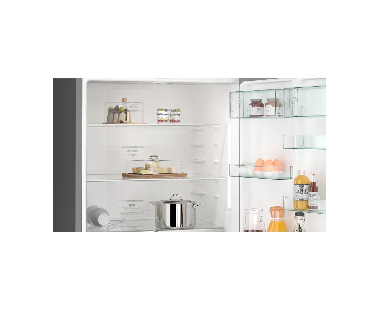 окремостоячий (соло), двокамерні, Загальний об'єм холодильника - 526 л, Система розморожування No Frost - холодильне + морозильне відділення, A+, інверторний, Оснащення - форма для льоду, контейнер для овочів, лоток для яєць, Корисний об'єм холодильної камери - 406 л, Полиці холодильної камери - загартоване скло (3 шт.), Корисний об'єм морозильної камери - 120 л, Кількість секцій в морозильній камері - 2 шт, 40 дБ, 186 см, 75 см, 80 см, 92.9 кг, Колір - нержавіюча сталь