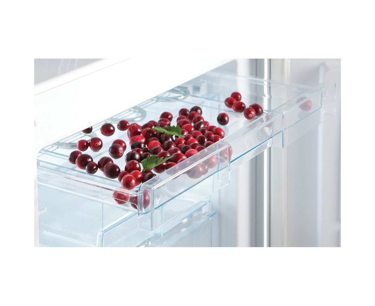 Морозильна камера має дуже зручне відділення для заморожування дрібних або сипучих продуктів, таких як ягоди, пельмені, вареники та інші дрібні продукти. У ньому також можна швидко заморозити морозиво для коктейльної вечірки.