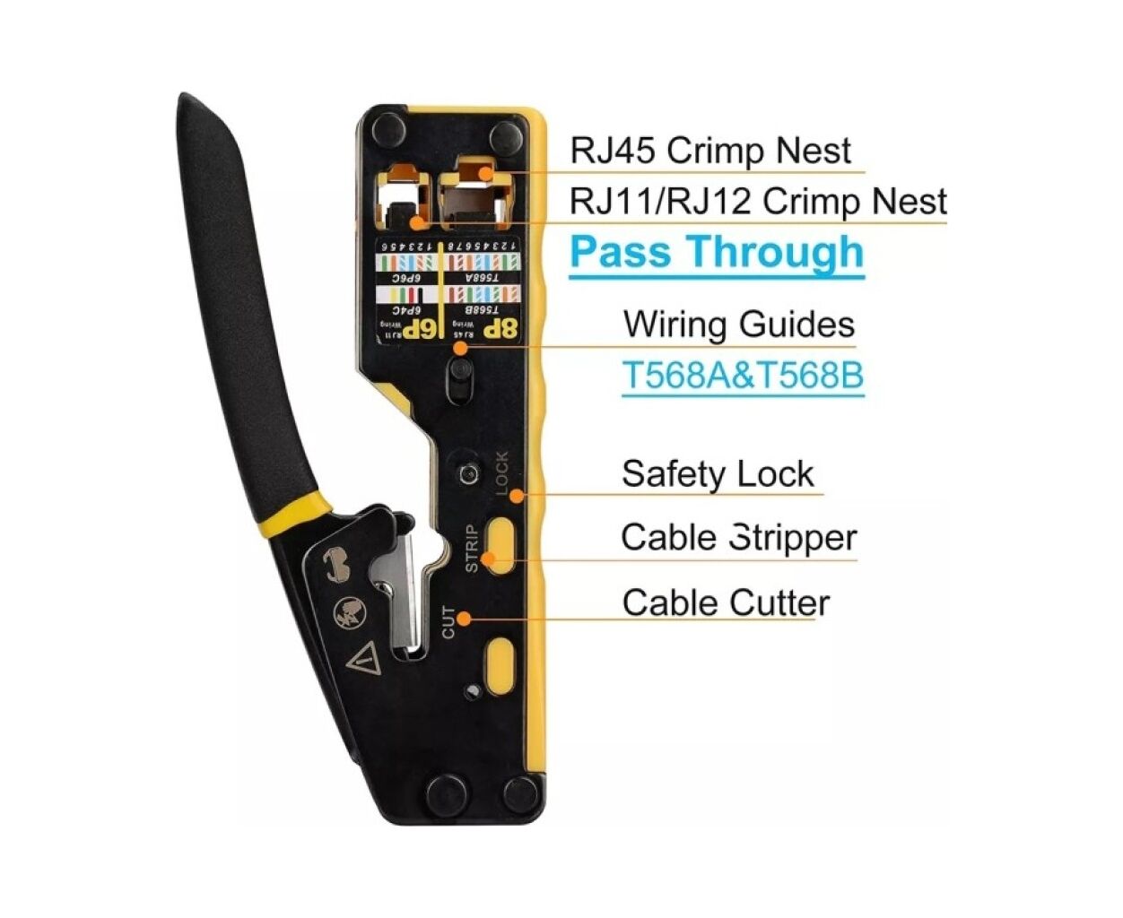 Інструмент Eserver RJ-45 (8P8C), RJ-12/11 (6P6C/6P4C), для прохідних конекторів (WT-4227B)