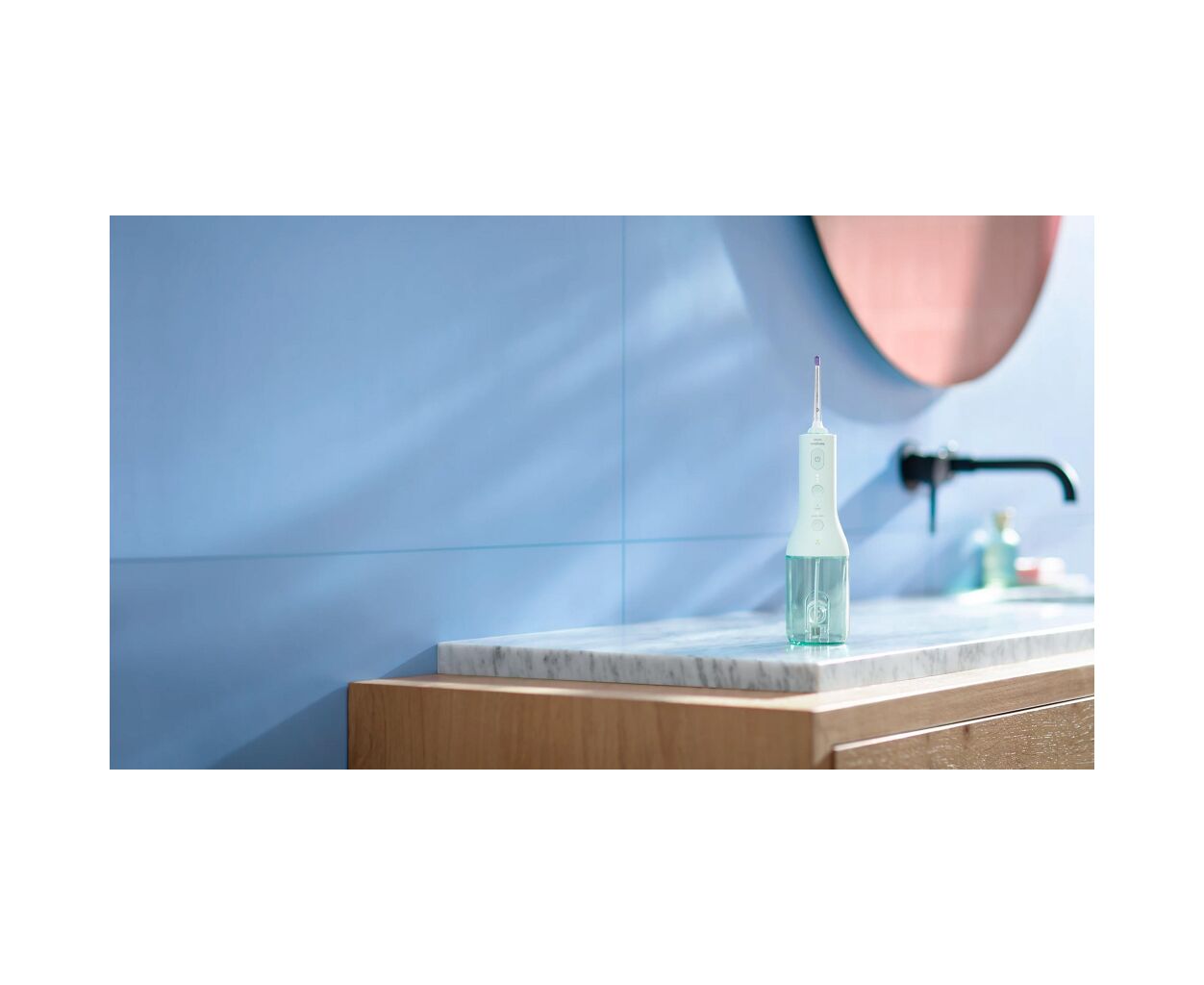 Портативний іригатор з ємністю 250 мл завжди допоможе подбати про гігієну порожнини рота. Просто відкрутіть резервуар, зніміть та наповніть його водою, або використовуйте бічний клапан для легкого наповнення водою.