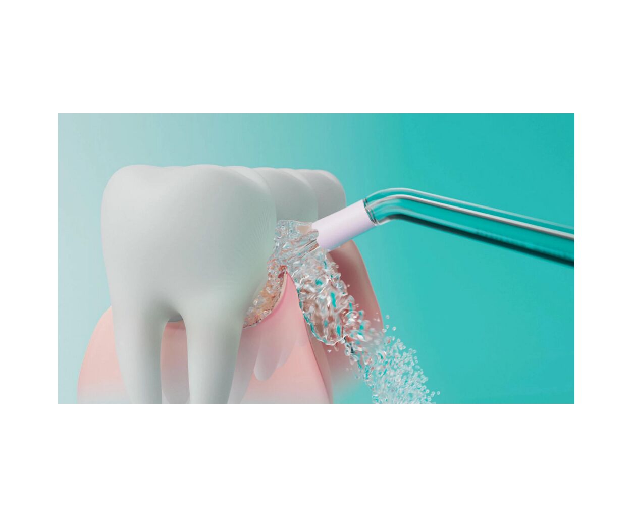 Спрямуйте насадку на міжзубні проміжки, ввімкніть пристрій та ведіть насадку від зуба до зуба. Іригатор подбає про якісну гігієну та ефективне очищення міжзубних проміжків та приясеневої ділянки.