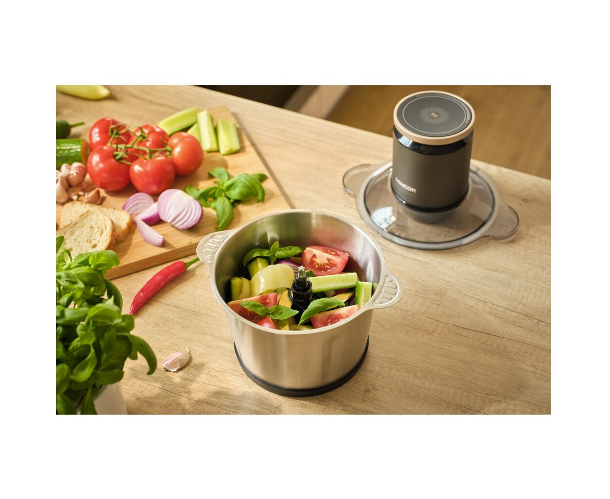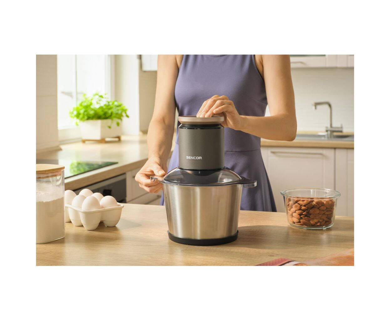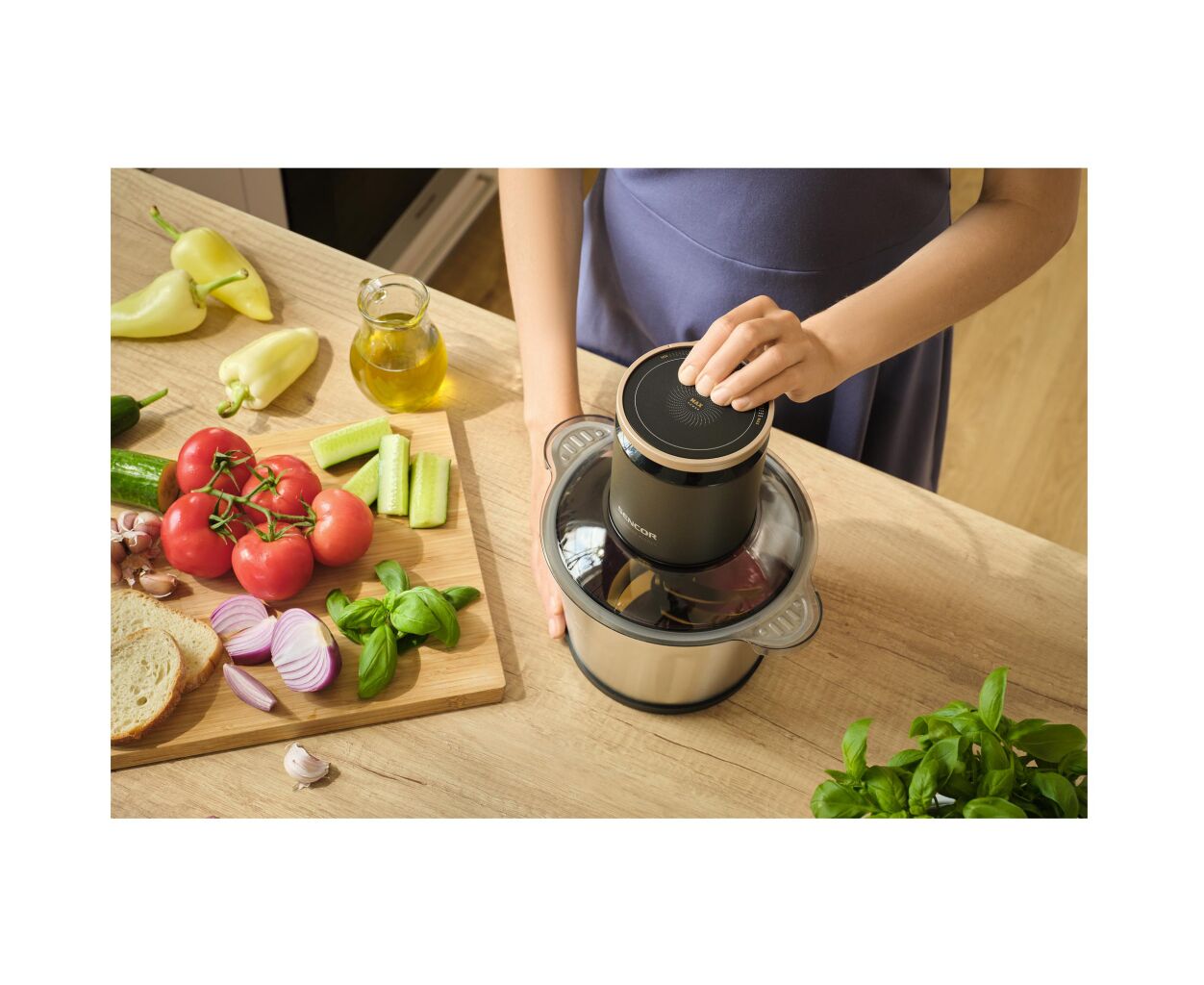 Плавне регулювання швидкості дозволяє адаптувати процес подрібнення до різних продуктів — від м’яких овочів до твердих горіхів. Легке керування та зручне очищення завдяки знімним деталям, придатним для миття вручну чи в посудомийній машині (крім основи).