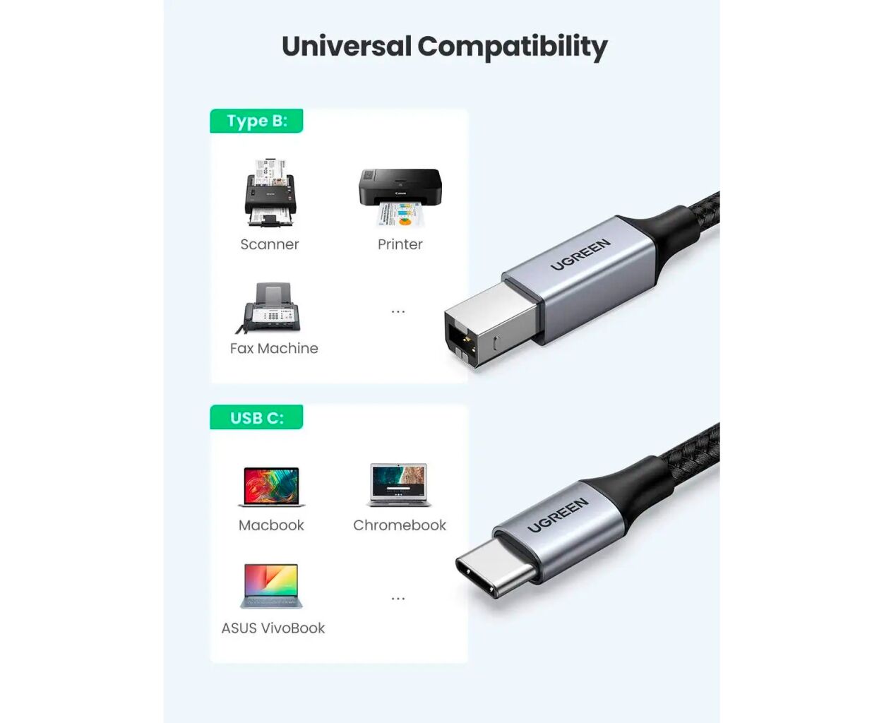 Відгуки про Кабель для принтера USB-C to BM 1.0m black UGREEN (45034) від реальних покупців