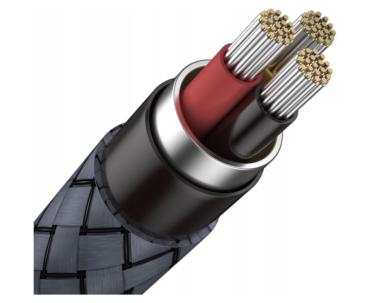 - Кабель виготовлений із високоякісних матеріалів, що забезпечують міцність та довговічність у повсякденному використанні