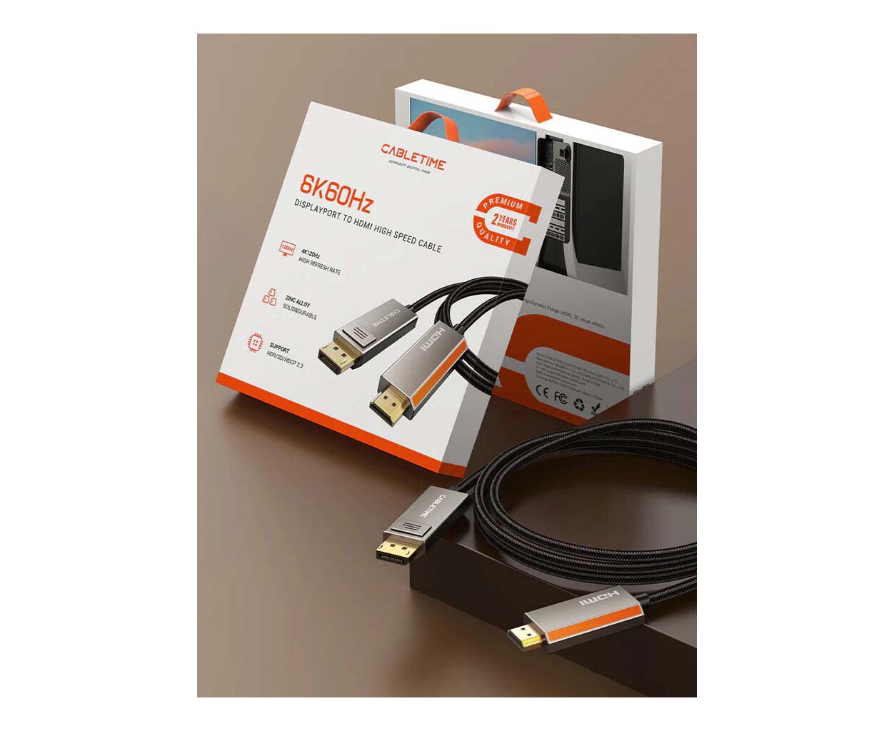 Кабель мультимедійний DisplayPort M to HDMI M 8K60Hz Cabletime (CA916405)