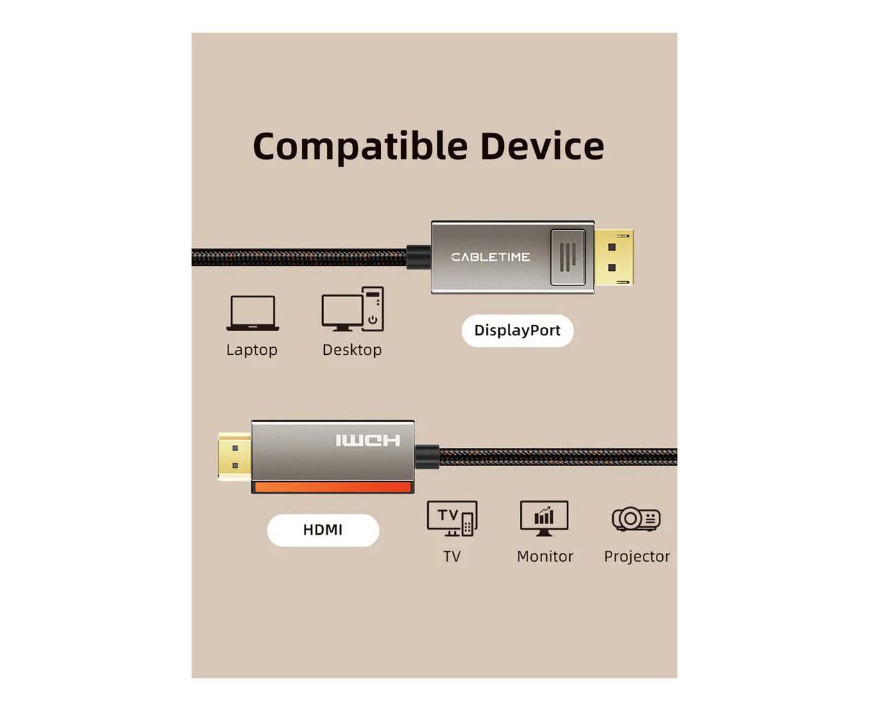 Відгуки про Кабель мультимедійний DisplayPort M to HDMI M 8K60Hz Cabletime (CA916405) від реальних покупців