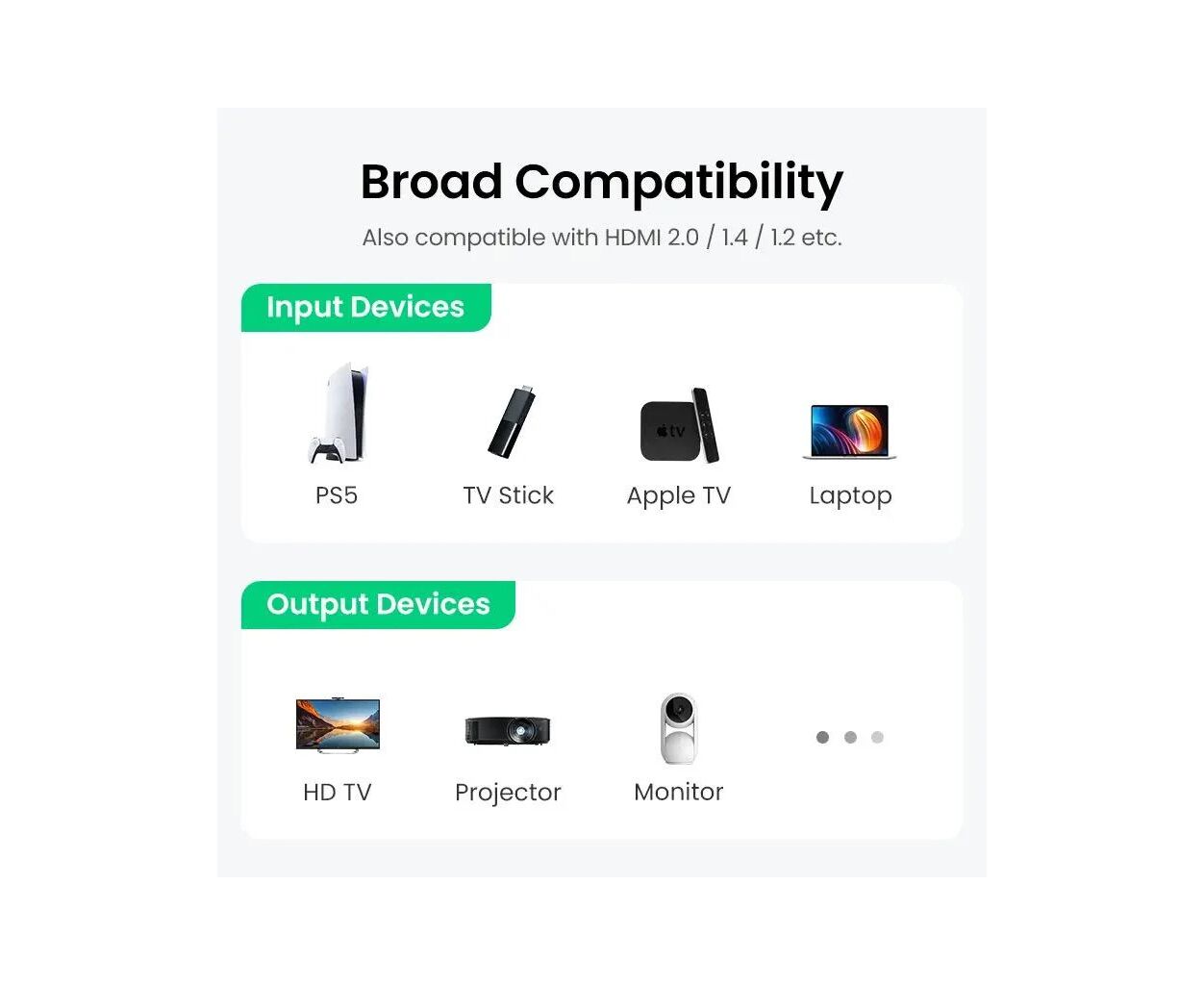 Подовжувач HDMI «тато-мама» сумісний з HD-телевізором, TV Stick, Chromecast, програвачами потокового мультимедіа Roku, DVD-плеєрами Blu-Ray, ігровими консолями, супутниковою приставкою, AV-ресиверами, ТВ-приставками, Boxee, Xbox360, Xbox One S, PS5, PS4, PS3, PSVR, Nintendo Wii U, гарнітура Oculus Rift VR, флешка для ПК з Windows 10, настінний телевізор, селекторний блок HDMI, ПК і т.д.