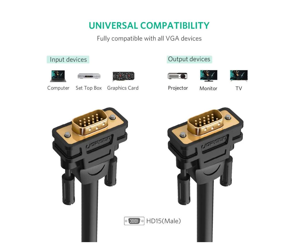 Характеристики Кабель мультимедійний VGA M to VGA M 3.0m VG101 black Ugreen (11631)