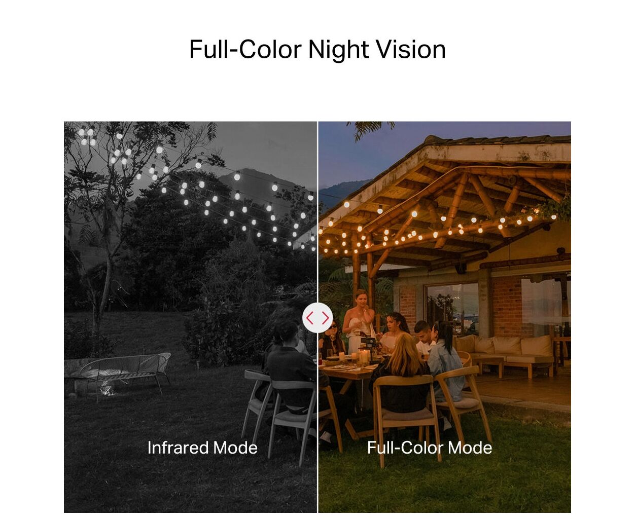 Чітко бачте в темряві завдяки повнокольоровому нічному баченню. Навіть при слабкому освітленні або майже повній темряві камера фіксує чіткі деталі та забезпечує цілодобовий захист, на який ви можете покластися.