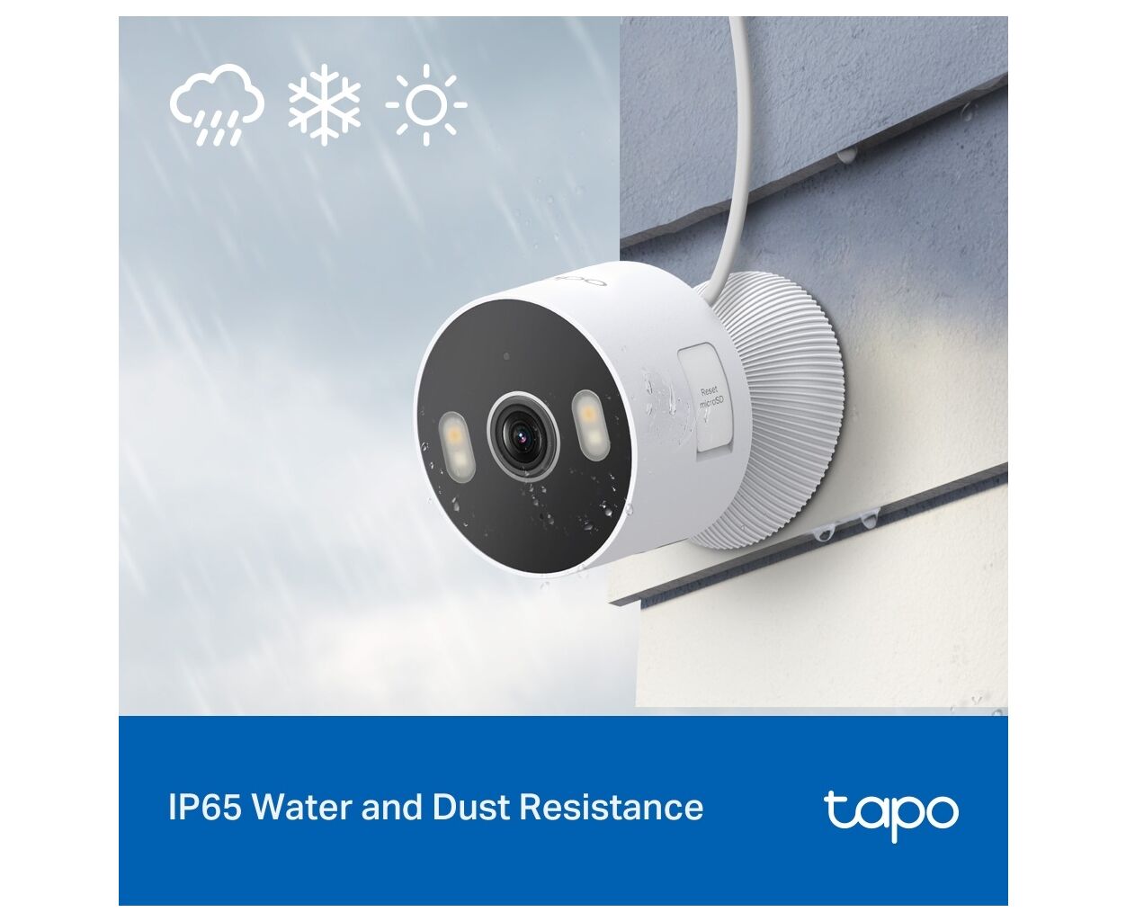 Захист від води та пилу IP65Дощ чи сонце, камера завжди поруч, щоб убезпечити вас.