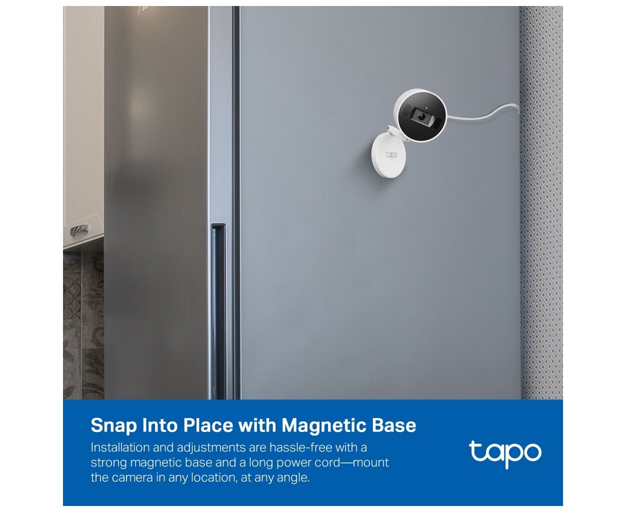 Монтаж камери Tapo C125 дуже простий завдяки міцній магнітній основі, яку можна використовувати для закріплення камери під потрібним кутом і в потрібному місці. Довгий шнур живлення забезпечує достатню відстань для підключення камери до електромережі.
