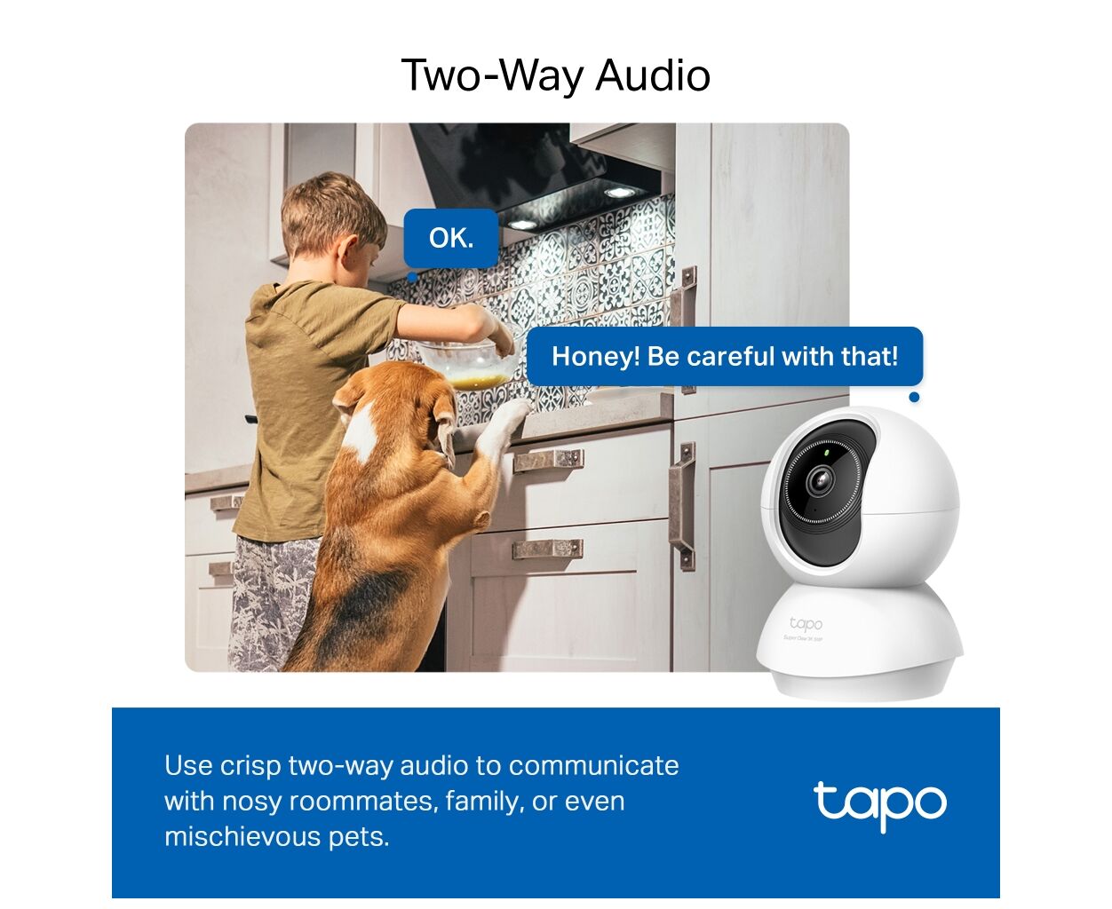 Однією з головних функцій є двостороннє аудіо: ви можете не лише отримувати відео, але й взаємодіяти зі своїм оточенням. Використовуйте цю можливість для спілкування з родиною чи навіть дбати про домашніх улюбленців.