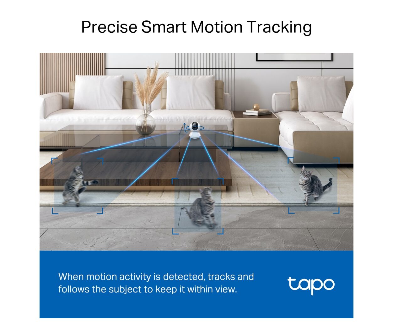 Камера пропонує широкий діапазон охоплення завдяки можливості панорамування та нахилу, що надає вам детальний огляд приміщення. Інтелектуальна функція точного відстеження руху гарантує, що об’єкти залишаться у фокусі, навіть якщо вони переміщуються.