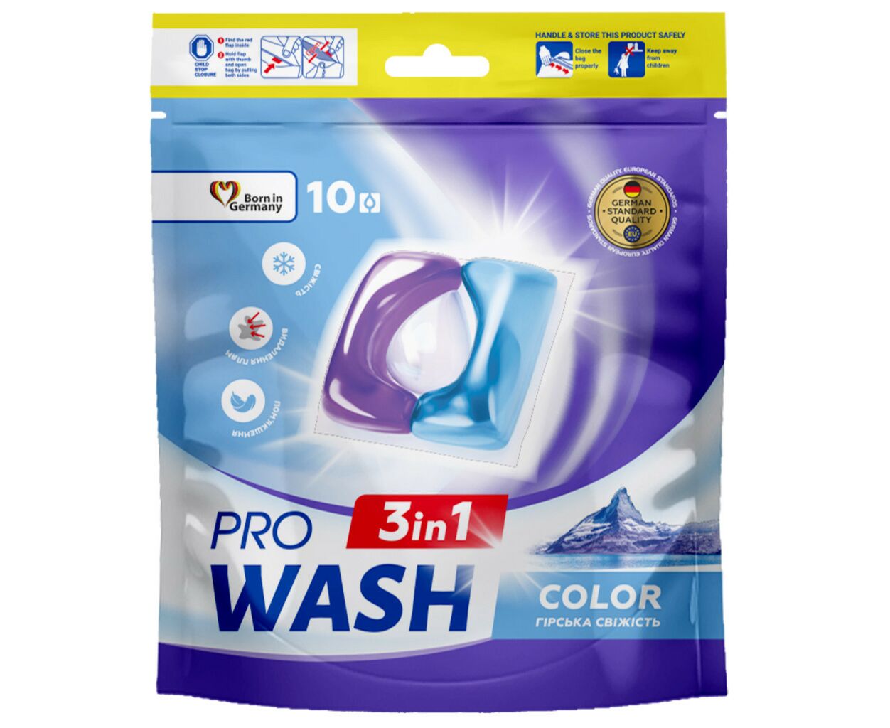 Опис Капсули для прання Pro Wash Color Гірська свіжість 10 шт. (4823128002277)