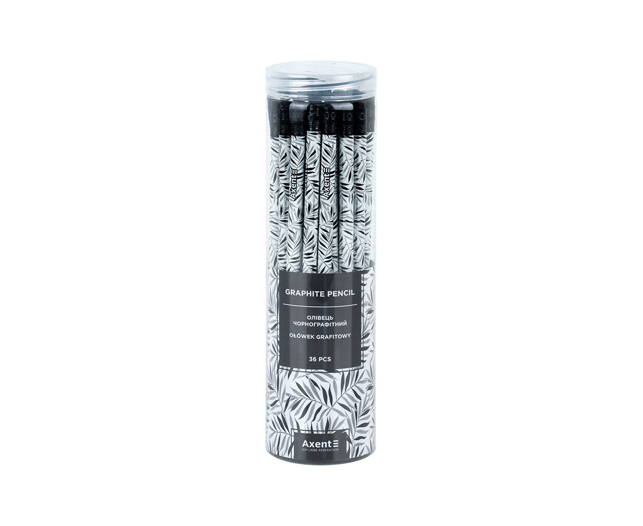 Олівець графітний Axent Black Leaves круглий, з гумкою, НВ (9009/36-19-A)