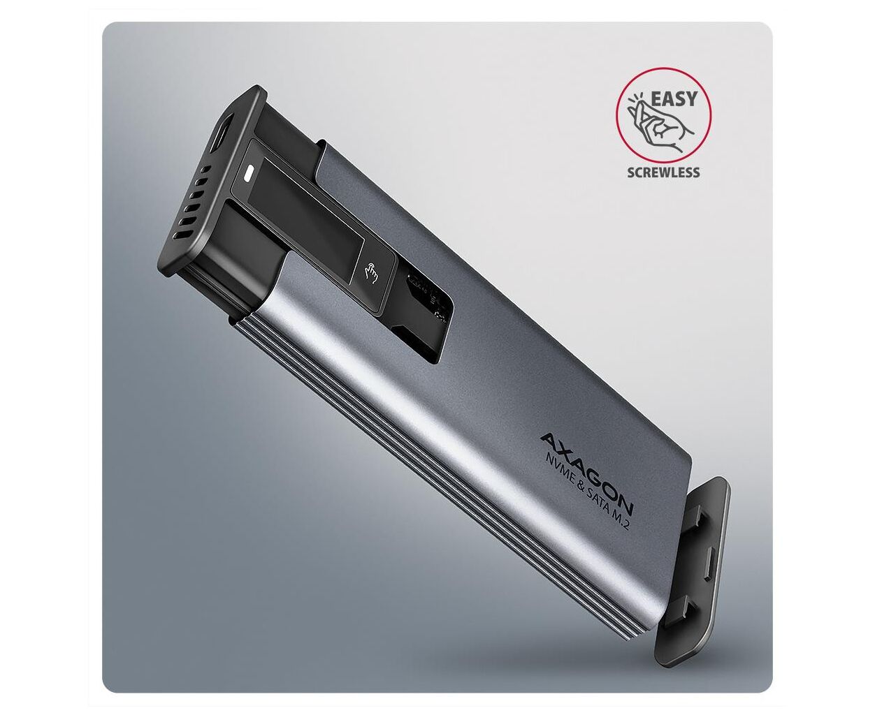 Кишеня зовнішня AXAGON USB-C 10Gbps metal box with info display for M.2 NVMe & SATA SSD (EEM2-SD2)