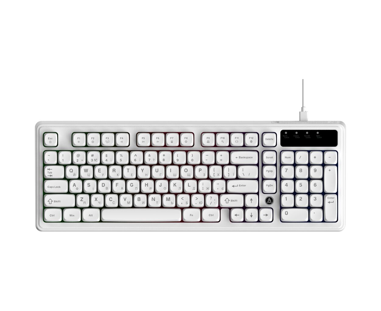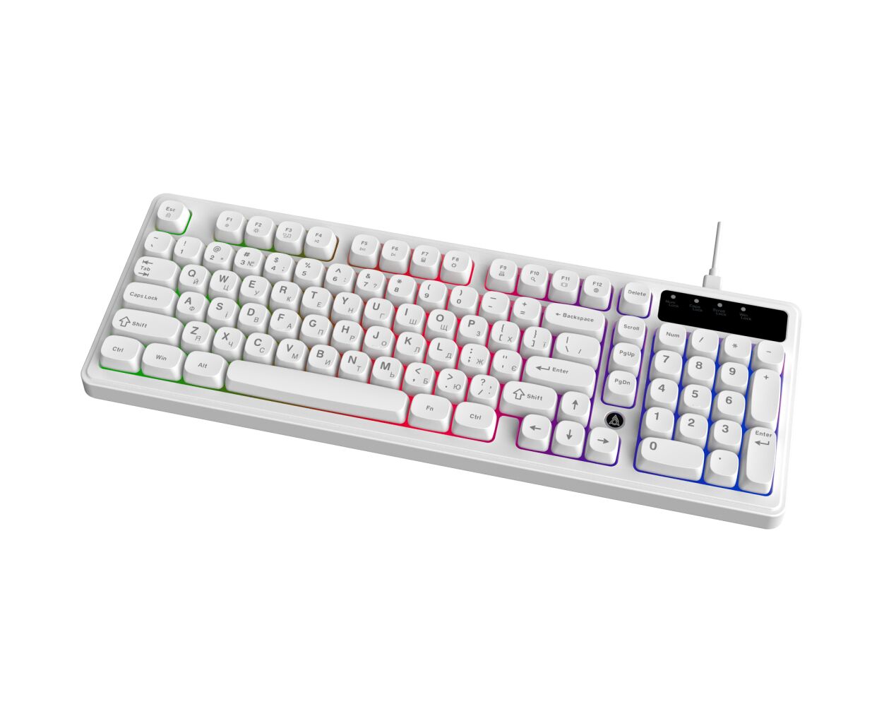 ігрова, мультимедійна, з підсвіткою, для ПК, мембранна, дротова, USB, повнорозмірна, Підсвічування - Rainbow LED, англійська, українська, для програміста, Шнур - 1.6 м, 413 x 147 x 42 мм, 750 г