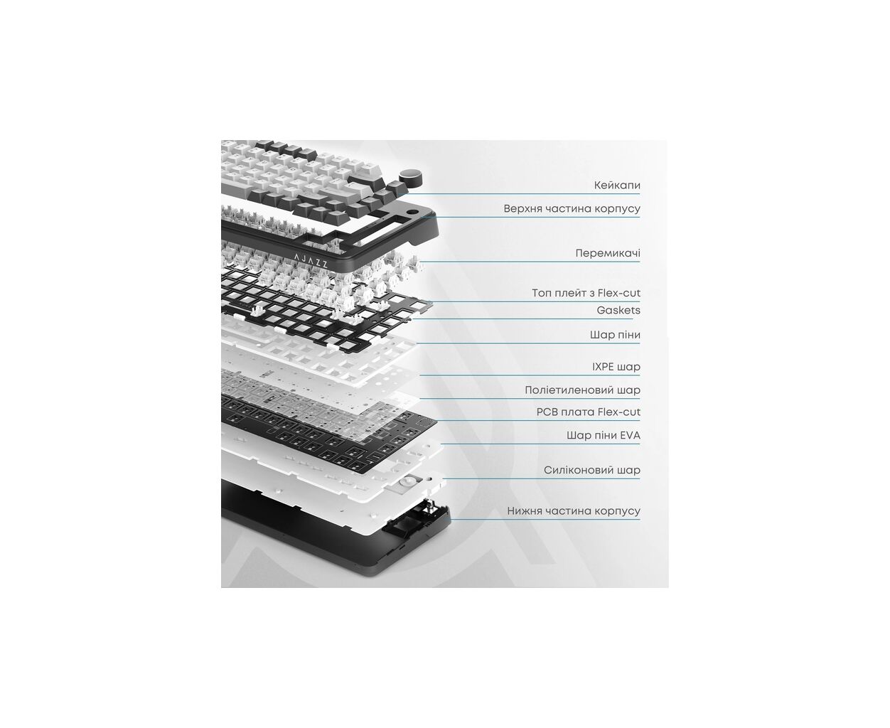 • Гаскетна структура для зменшення шуму та підвищення комфорту при наборі