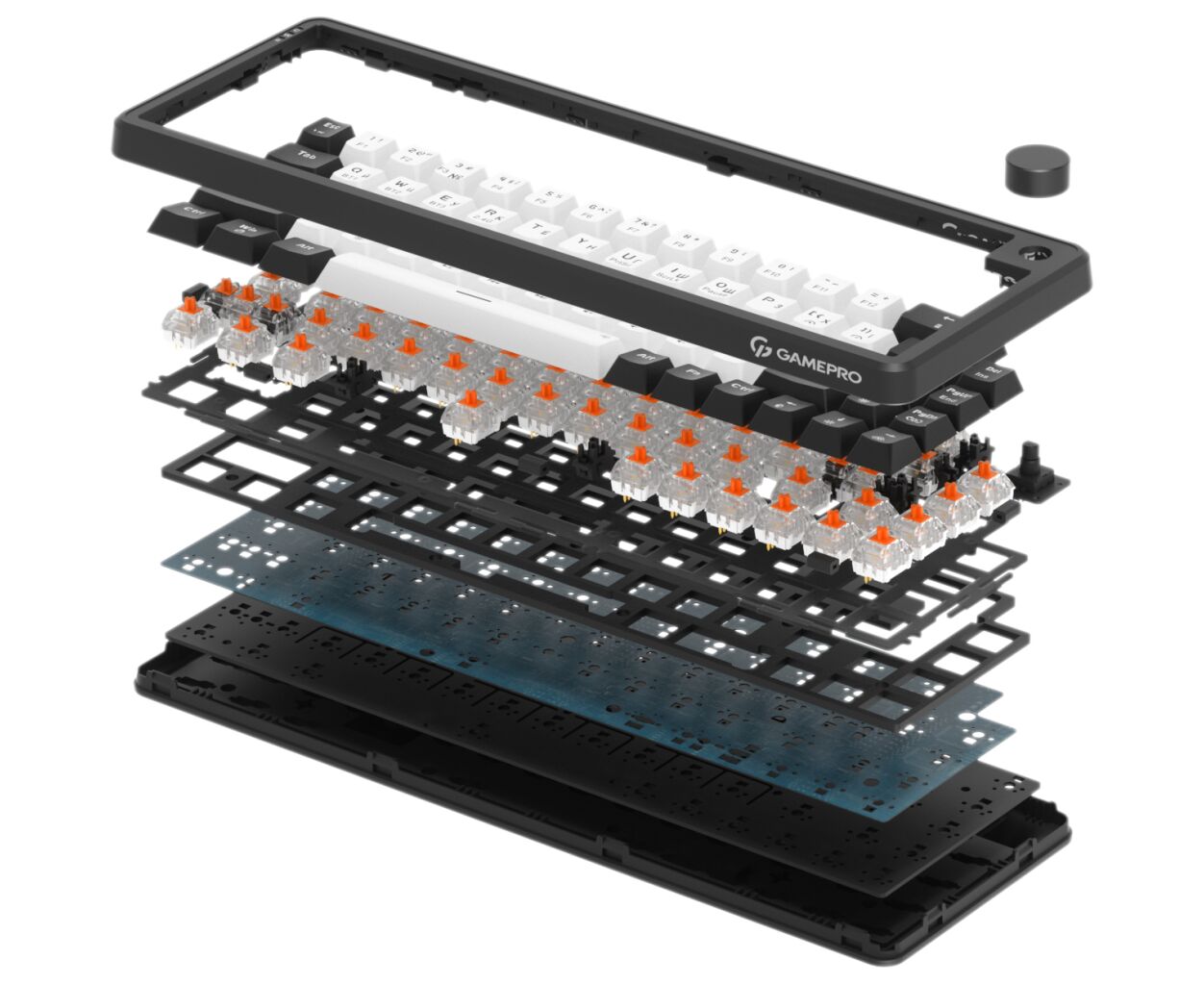 Надійні PBT-кейкапи і тип побудови Gasket Mount із двома шумопоглинаючими шарами EVA забезпечують приємний тактильний відгук і зменшення шуму під час друку.