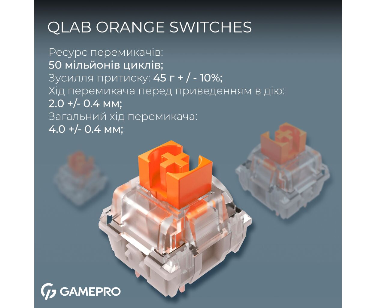 Перемикачі QLAB Orange з лінійним типом спрацювання гарантують плавний хід і мають ресурс до 50 мільйонів натискань.
