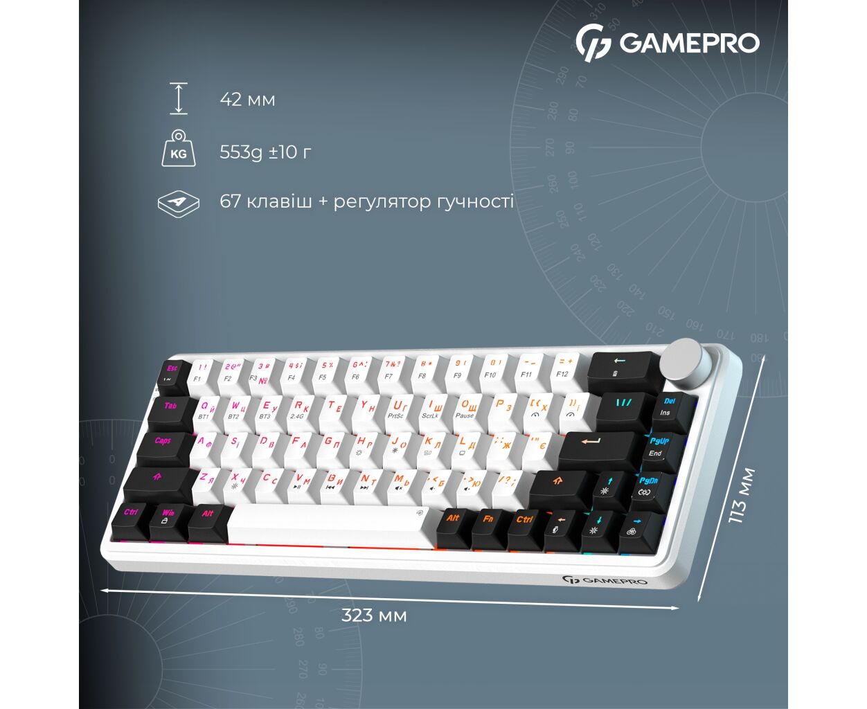 Клавіатура GamePro Asgard Valhalla MK210W Pro 65 RGB Wireless/Bluetooth/USB White (MK210W Pro)