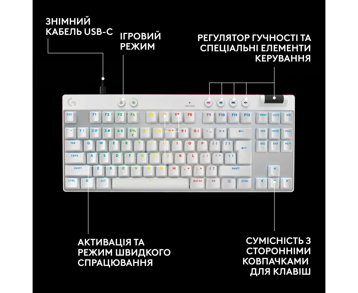 Клавіатура Logitech G PRO X TKL Rapid Linear USB UA White (920-013242)