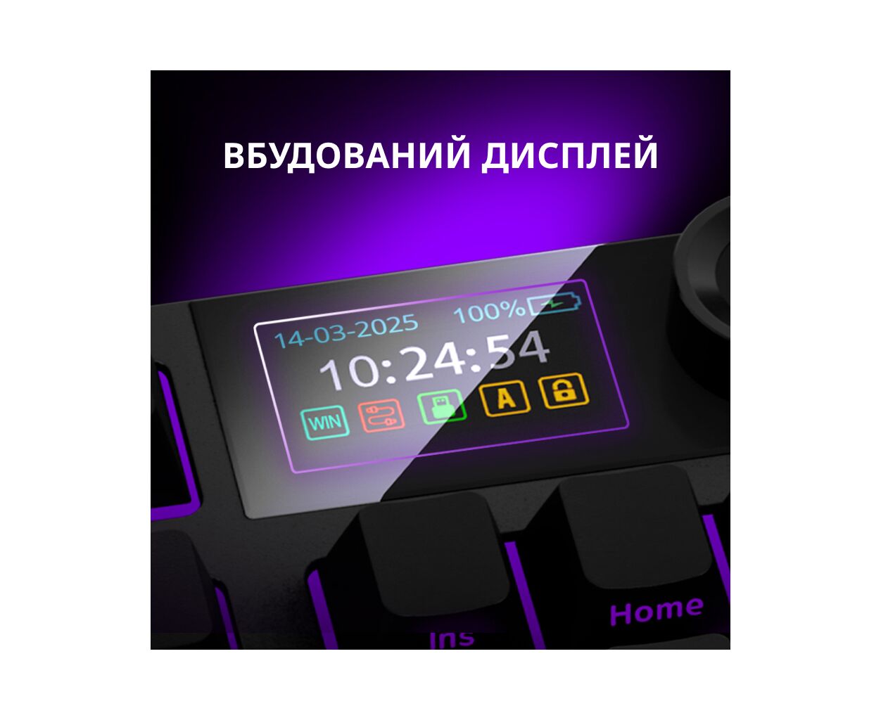Однією з ключових особливостей є адаптивний RGB-дисплей та смарт-регулятор, які не лише додають функціональності, але й дозволяють повністю налаштовувати підсвічування та мультимедіа відповідно до власних уподобань. Крім того, гарячозмінні перемикачі спрощують процес заміни свічів без необхідності в пайці, надаючи користувачу свободу персоналізації на новий рівень.