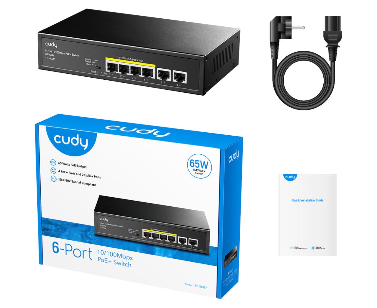Комутатор Cudy FS1006P відповідає стандарту IEEE802.3af/at. Використовуйте його для IP камер, IP телефонії, побудови мереж Wi-Fi для бізнесу та інших потреб.