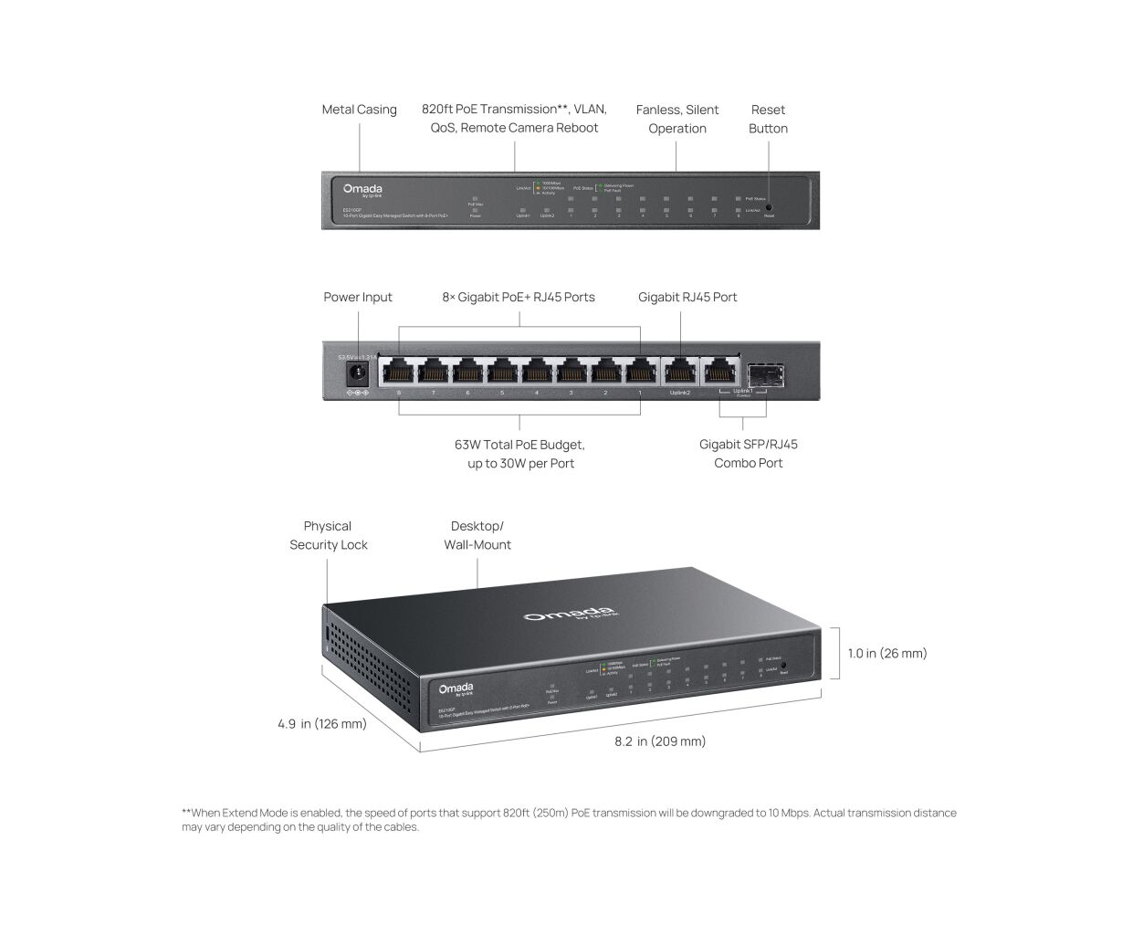 smart, Портів - 10, 8 x RJ-45 10/100/1000 Мбіт/с, 1 x 10/100/1000 Мбіт/с RJ45, 1 комбінований порт Gigabit SFP/RJ45, Комутаційна здатність - 20 Гбіт/с, МАС - 8000 адрес, Робота - від 0 до 40 °C, Зберігання - від -40 до 70 °C
