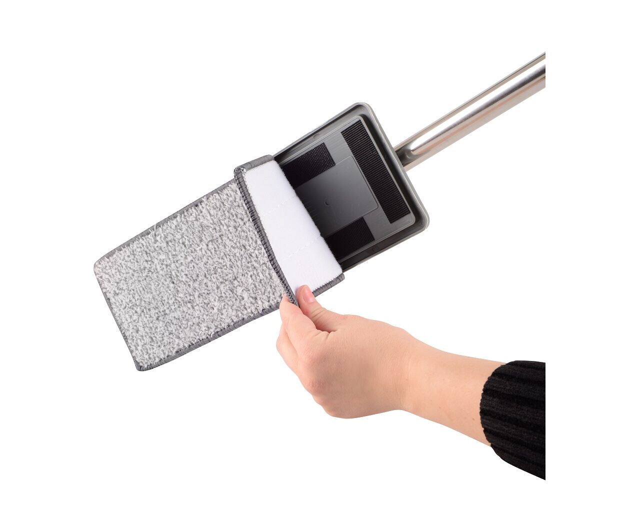 • Завдяки оптимальному розміру та рухливій пластині швабра легко маневрує навколо меблів і стін.