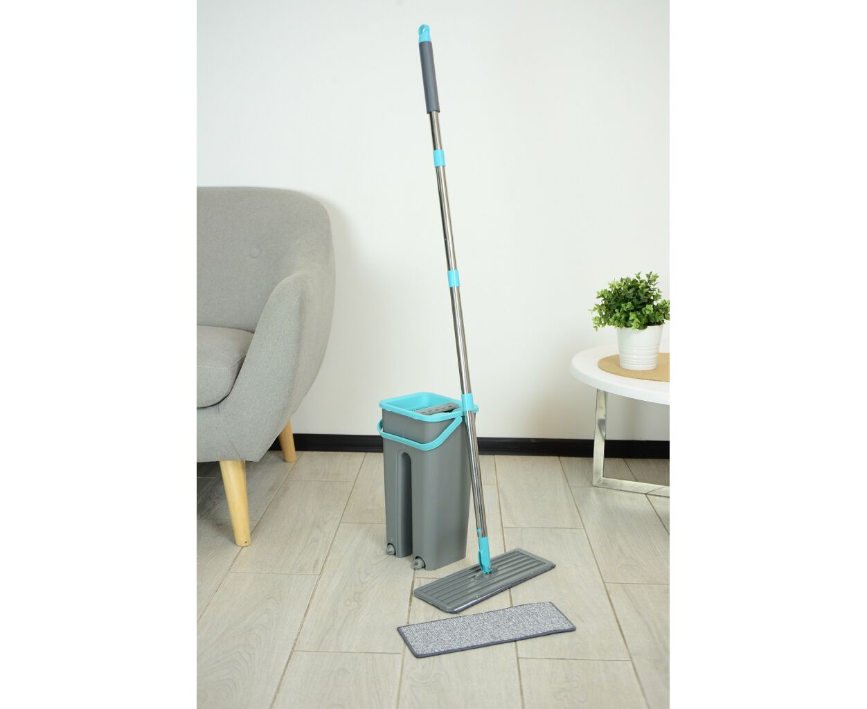 Комплектація - відро, швабра, механізм для віджиму, Матеріал - поліпропілен, мікрофібра, нержавіюча сталь, 4 л, Колір - блакитний, сірий, Країна-виробник - Китай