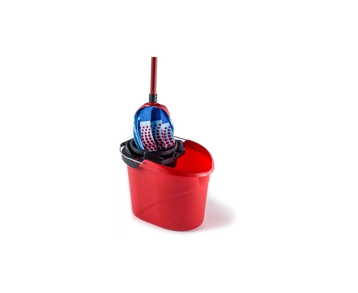 Комплектація - відро, швабра, механізм для віджиму, моп, Матеріал - сталь, поліпропілен, поліамід, поліестер, 10 л, Колір - червоний, Країна-виробник - Італія