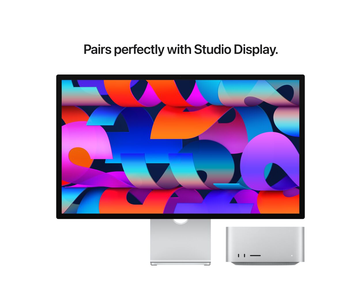Mac Studio було розроблено для ідеального поєднання зі Studio Display — великим дисплеєм Retina 5K з діагоналлю 27 дюймів. Разом вони утворюють неперевершений тандем для будь‑якої студії.