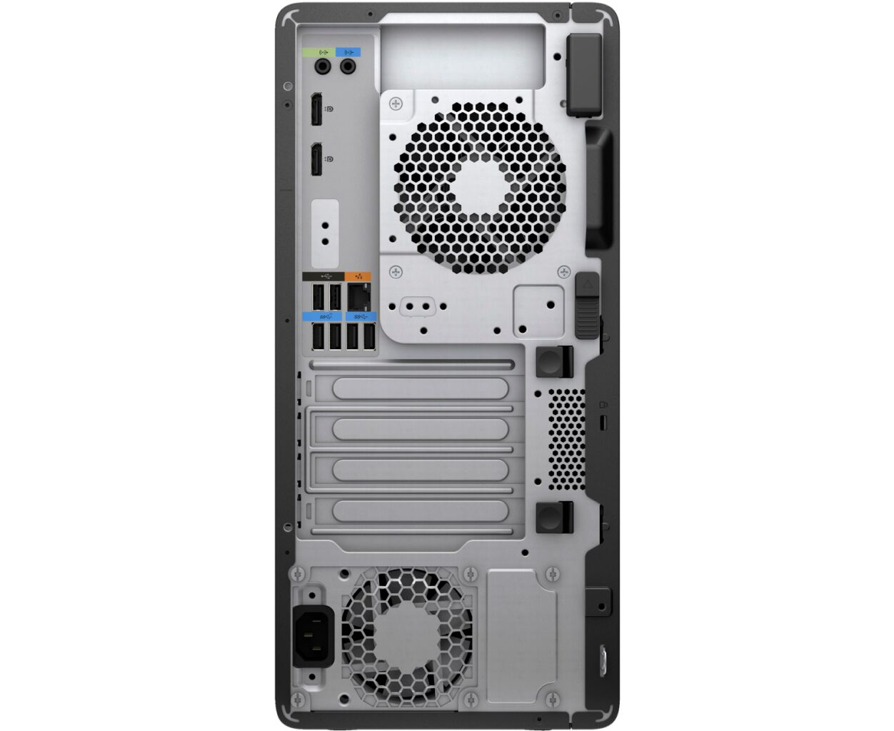 - Спереду:4 х USB Type-A 1 x USB Type-C КардрідерКомбінований аудіороз'єм для навушників/мікрофонаПозаду: 4 х USB 3.2 2 х USB 2.0 1 x RJ-45 2 x DisplayPort 1.41 x VGA1 х RS-232 (COM)1 х вхід для аудіо 1 х вихід для аудіо