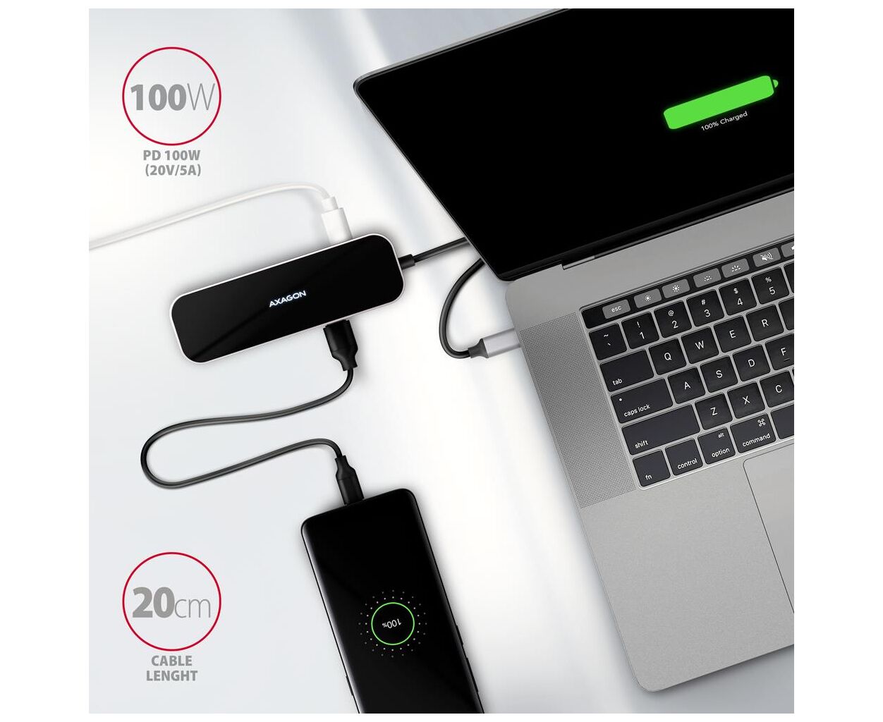 Характеристики Концентратор AXAGON USB-C 6-in-1 to 4xUSB-A 5Gbps + 1xUSB-C PD100W + HDMI 4K30Hz 0.2m aluminum (HMC-6H4A)