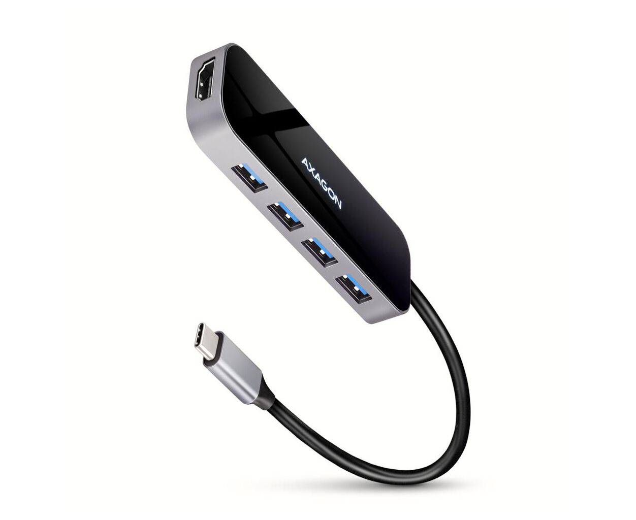 Концентратор AXAGON USB-C 6-in-1 to 4xUSB-A 5Gbps + 1xUSB-C PD100W + HDMI 4K30Hz 0.2m aluminum (HMC-6H4A)